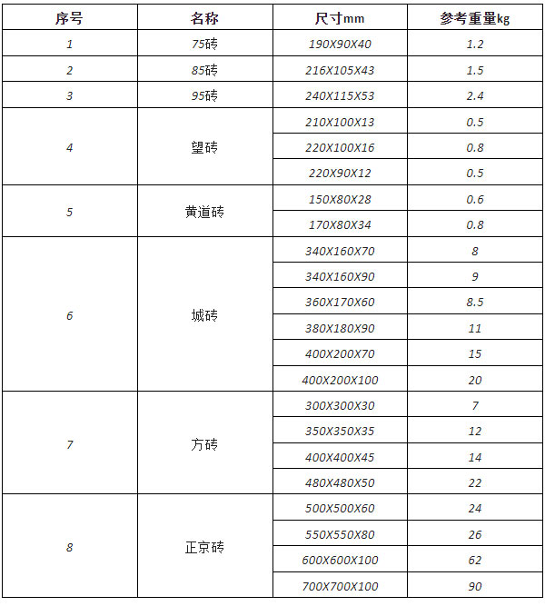 青磚種類及規(guī)格